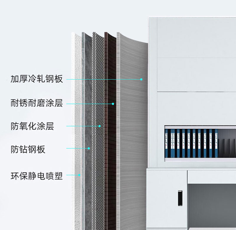 自动选层柜采用优质碳素结构冷轧钢扳,经数控模压冲压等工艺制造成型;全封闭外壳结构具有防尘,结构牢固, 柜体表面采用静电喷涂,漆膜耐冲击达到GB/T1732-1993标准,漆膜附着力达到GB/1720-1979(89)标准,漆膜耐腐蚀性能达到GB/1763-1979(89)标准;漆膜具有色泽厚度均匀一致,表面光泽艳丽等优点。控制操作台采用防火贴面高密度中纤板制成,具有防火绝缘不变形等特点。