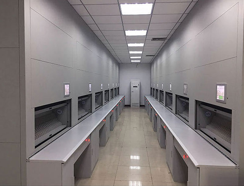 自动选层柜可广泛用于部队、政府、医院、银行、公检法系统、金融机构、院校、图书馆、档案馆、研究所、设计所、海关、企业和事业单位等。以上领域每天都会产生海量数据,并且将这些数据放入磁带、档案或纸张等存储介质中。这样会造成大量存储介质的产生。而传统的管理方法,就是将存储介质存放在简单的铁皮柜中,依靠专门的人员进行管理。而且随着数据量的增加,就会造成人力成本大大提高,工作效率低下等情况。而智能档案柜就可以解决以上所遇到的全部问题,并且还能够提高信息化建设的效率,明显增加实际利益。智能档案存储柜通过软件进行档案的查找、借阅和归还等操作,并可以进行智能定位,方便管理者查找和管理,节省管理成本,提高工作效率。