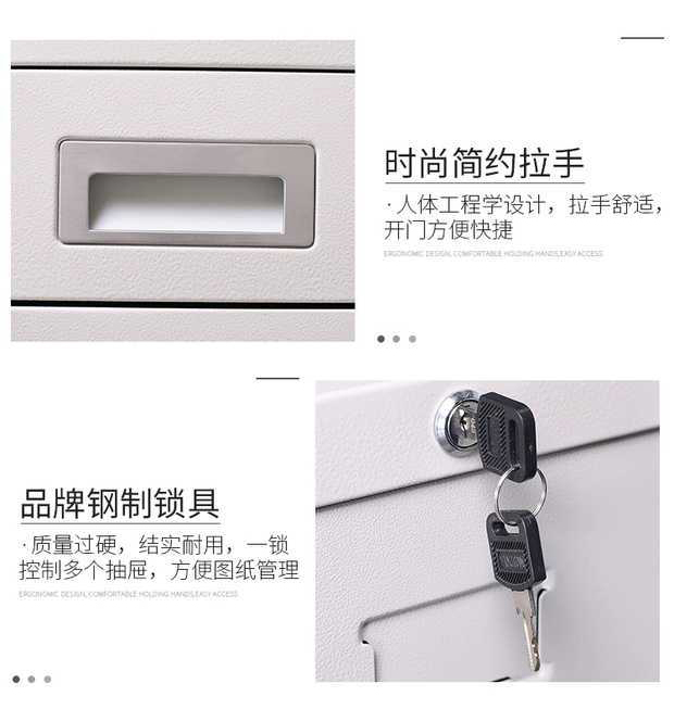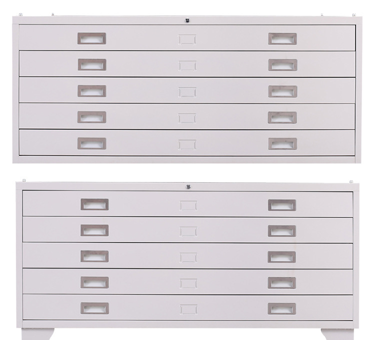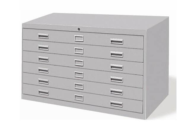 底图柜又称图纸柜:用来放置图纸用的铁制抽屉柜;按标准A型图纸大小一般可分类为0号底图柜;1号底图柜;2号底图柜等,柜体采用抽屉式结构,一般采用1.0mm以上的铁板或钢板生产制作;现在的底图柜一般采用铁皮柜的生产工艺流程;通过酸洗磷化防锈处理.高温静电粉末喷塑,环保无毒害,无气味,产品稳重、坚固;为档案图纸储存的首选产品;可根据自身的实际情况选用合适自己的底图柜。